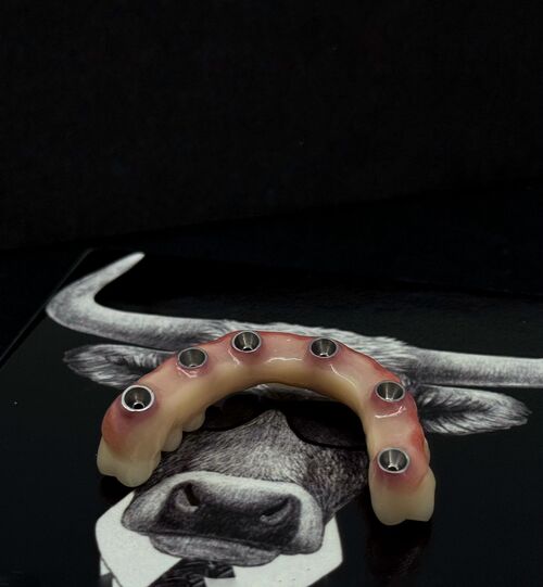 Тотальная реабилитация - это основа нашей лаборатории, так как наша лаборатория осуществляет полный цикл от планирования навигационной хирургии, создания на первом этапе смайл дизайна, разборных шаблонов, накостных шаблонов, одномоментной нагрузки. Используя современные технологии такие, как фотограммотметрия. При тотальном протезировании мы используем различные виды материалов – пмма, композит, мультилеер титановые балки.